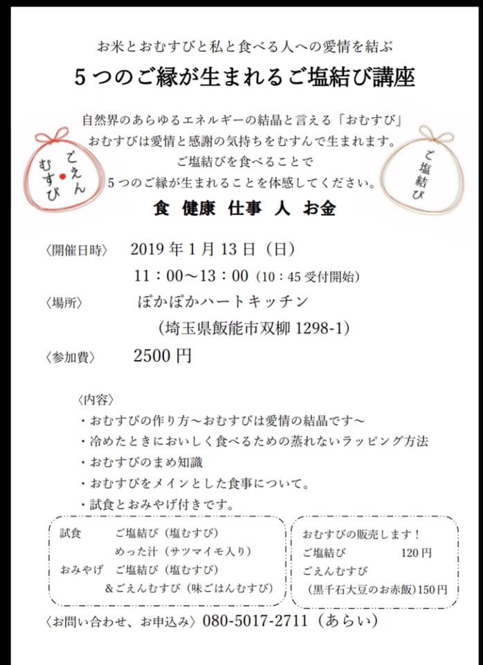 2019年1月13日 / 最終更新日時 : 2019年1月31日 sekitanaoko なおこのはんのう日記 ごえんむすび 北村美佐江さんと荒井知子さんによる イベントにお邪魔しました ご縁が生まれるご縁むすび講座?? 思いをカタチにすることができる ステキなおふたりです。 おむすび豆知識も教えて頂いたので おむすび大好きな娘に 美味しいの作ってあげよう! Follow me! BlueskyCopy