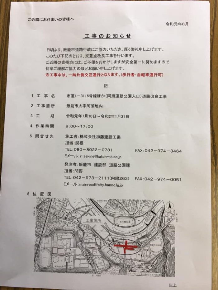 2019年8月27日 / 最終更新日時 : 2019年8月28日 sekitanaoko なおこのはんのう日記 市民体育館、阿須運動公園入口の拡張工事 以前もお知らせ致しましたが市民体育館、阿須運動公園の入口の拡張工事がいよいよ始まります。 工期は来年1月末まで。 「信号機が設置されたのに何故稼働しないのか?」 とのご意見を沢山頂きましたが、この信号機は道路整備が完了してからとなります。 なお、トーベヤンソンあけぼの子どもの森公園等、周辺施設は通常通りご利用いただけます。 何卒ご理解の程よろしくお願い致します。 Follow me! BlueskyCopy