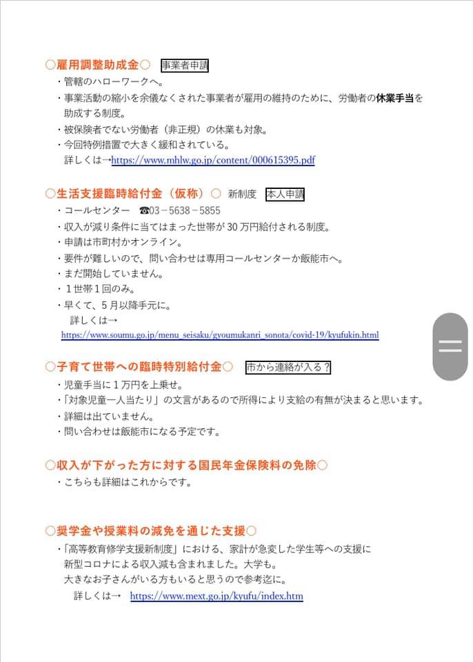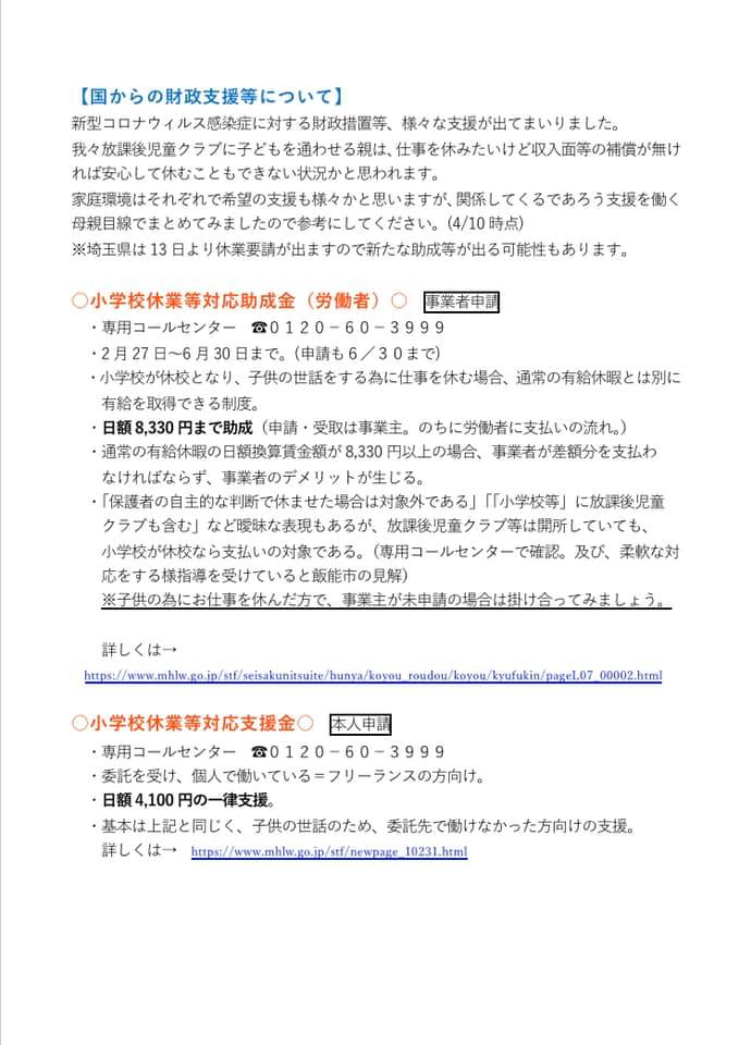 2020年4月11日 / 最終更新日時 : 2020年4月24日 sekitanaoko なおこのはんのう日記 新型コロナウイルス感染症の支援をまとめました 娘の通う放課後児童クラブのお母さんたちへの参考にと、国の支援等をまとめてみました。 良かったらご覧下さい。 Follow me! BlueskyCopy