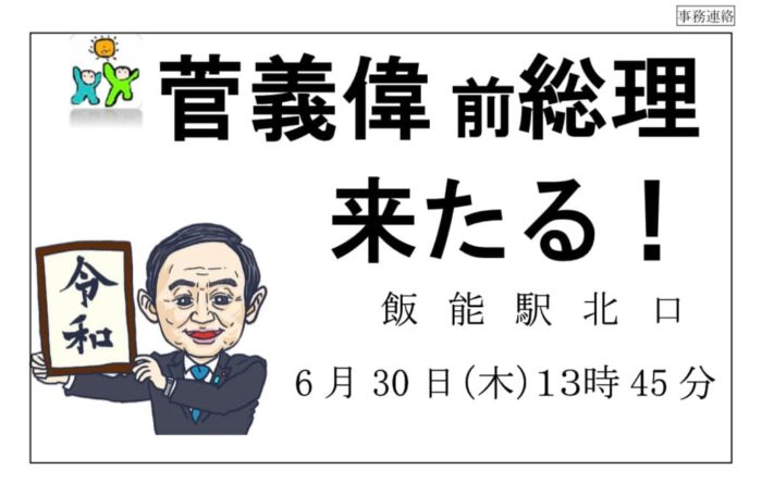 2022年6月29日 / 最終更新日時 : 2022年6月29日 sekitanaoko なおこのはんのう日記 関口まさかず をよろしくお願いします! 日本を守る、未来を創る 暑い中での参議院選挙戦が続いております! 外交・安全保障、原油高・物価高対策、 やりきれるのは自民党です。 【関口まさかず】宜しくお願いします。 30日(木)13:45~は飯能にて関口候補の街頭演説会を行います。 応援弁士は【菅義偉】前総理です! 飯能に総理大臣経験者が来るのは 滅多に無いことかと! Follow me! BlueskyCopy