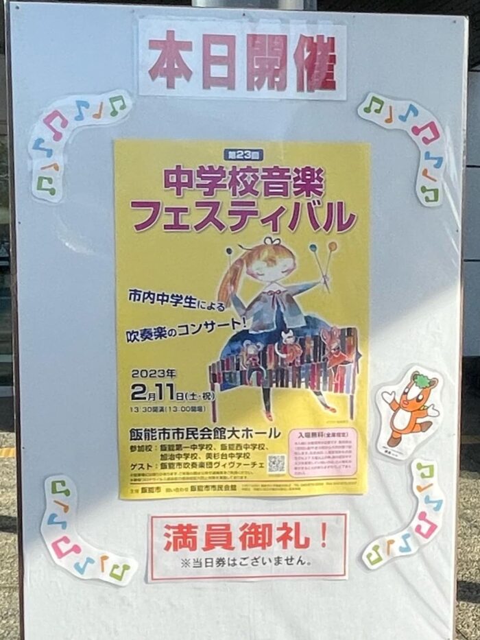 2023年2月11日 / 最終更新日時 : 2023年2月12日 sekitanaoko なおこのはんのう日記 第23回 中学校音楽フェスティバル 3年振りの開催でした。 飯能市の西中、一中、美杉台中、加治中の 吹奏楽部による素晴らしいステージとなりました。 相変わらず子供達が頑張る姿にはウルっとします 青春です。 娘はちょっと間違えた、とは言ってましたが、 みんなの練習以上の出来に楽しかったと、 興奮して帰ってきました。 コロナ禍でこのステージを経験できなかった卒業生の事を思うと、 今の状況は感謝でしかありません。 この様な機会を与えて下さった 顧問の先生方、市民会館、関係者の皆様 ありがとうございました。 Follow me! BlueskyCopy