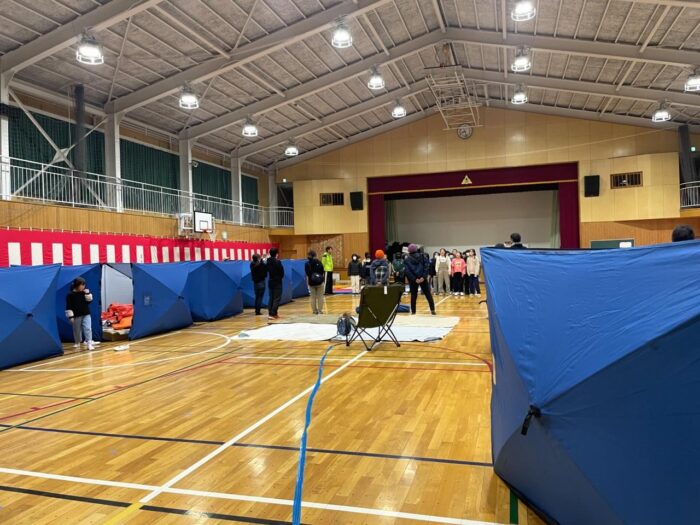 実際に体育館で一晩過ごすといった取り組みが行われました。