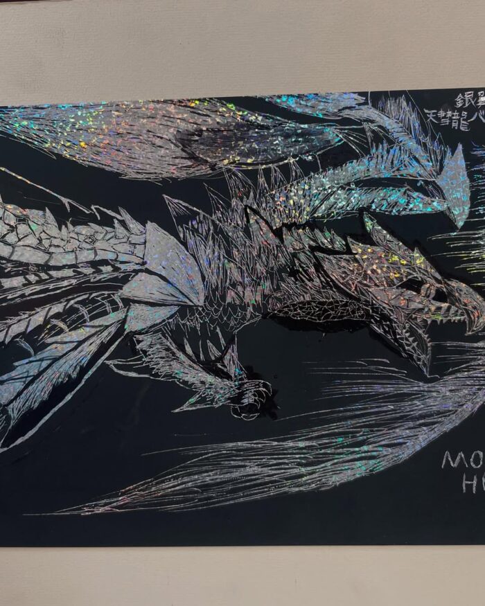 そして、モンスターの作品は招待状を頂いた。親しくしている小学生が通うアトリエの作品展に伺った時のもの。彼の作品は全て本当に細かく、本人曰く「細かくておかしくなりそうでした~」と。下書きなしで描くとの事。頭の中に全体像ができているんだろうなと感心しました。