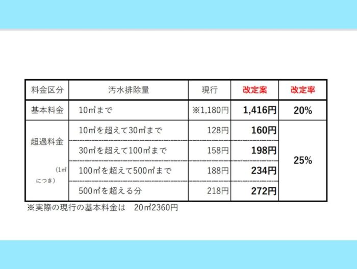何もかも値上げ値上げの昨今に非常に心苦しく思っております。しかしながら、下水道システムの不具合は生活に大きな損害を与えることになりますので何卒ご理解の程よろしくお願いします。