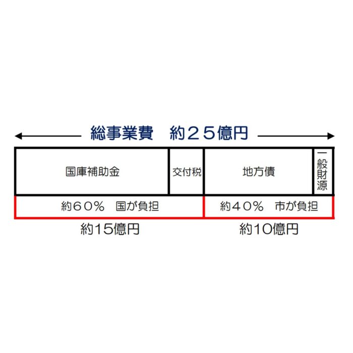 移転補償費や無電柱化を含む工事費は概算で25億円。今後の調査や設計により変動する可能性がある。事業費の概ねの財源構成は、国庫補助金が50%、地方債が45%、一般財源が5%と想定している。地方債「公共事業等債」を活用した場合、元利償還金に対する交付税措置率は約22%で、総事業費に対いて約10%相当である。このことから、総事業費に対する最終的な負担割合は、国が約6割、市が約4割となる。さらには、この整備によりどのような「まちなか」になるのかのイメージができず、疑問を持たれている方も多いのではと感じております。「飯能まちなか未来ビジョン」を進める上で、重要な要素の一つとして、基盤となる久下六道線の整備を進めるものである、との答弁も頂きました。