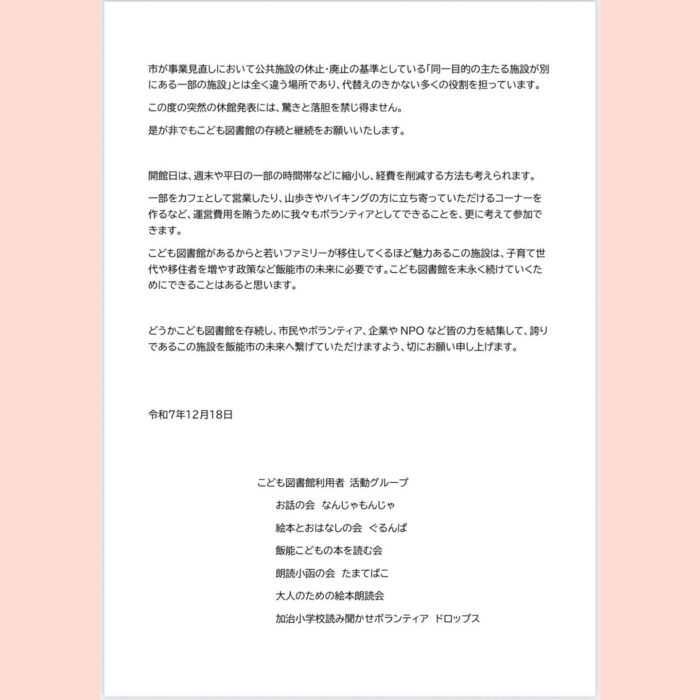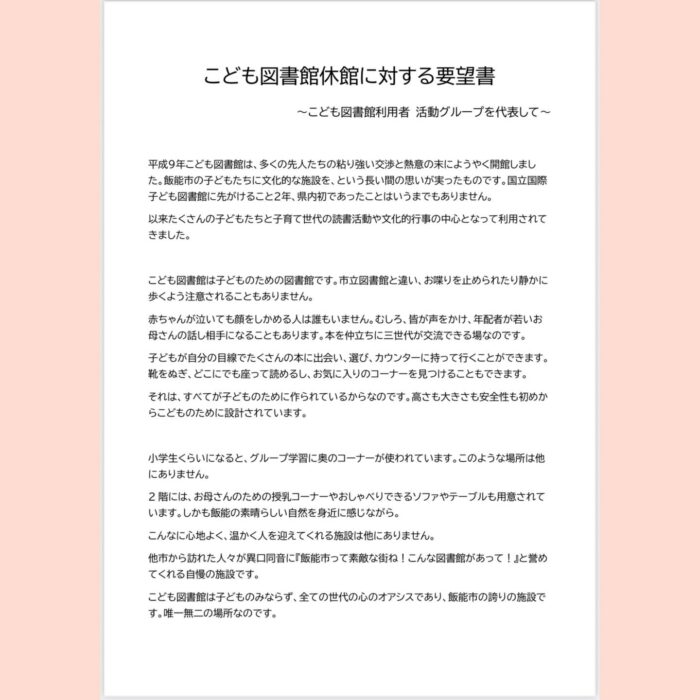 こども図書館休館に対する要望書