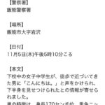 2020年8月25日 / 最終更新日時 : 2020年8月28日 sekitanaoko なおこのはんのう日記 防犯情報!ご注意ください! [タイトル] 不審者[警察署] 飯能警察署[日付] 8月25日(火)午後6時10分ころ[場所] 飯能市大字岩沢[本文] 下校中の女子中学生が、徒歩で近づいてきた男につきまとわれたとの情報が寄せられました。男の特徴は、20 […]